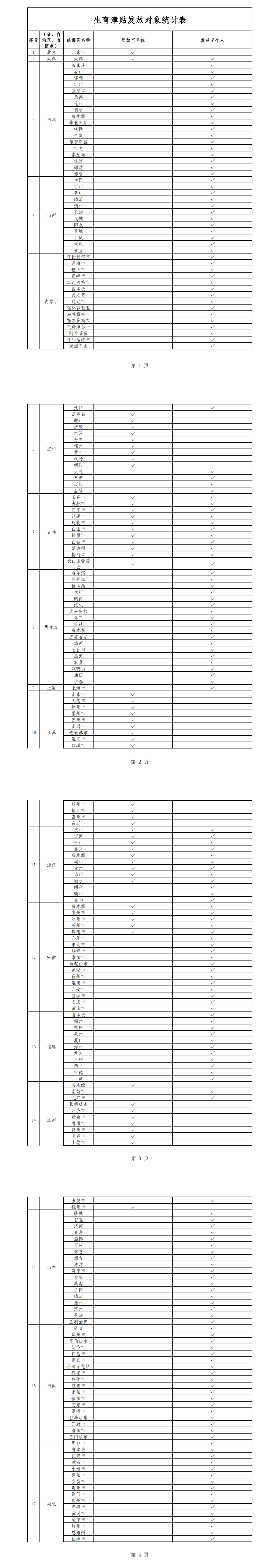 各統(tǒng)籌區(qū)生育補(bǔ)貼發(fā)放具體情況詳見下表 。四川、甘肅、新疆生產(chǎn)建設(shè)兵團(tuán),即河北、浙江 、湖北、吉林 、重慶、上海、